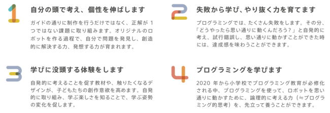 変わりゆく知識を覚えるのではなく,自ら考え,それらを形にしていく普遍的な「考える力」を身につけるためのプログラミング教育です。